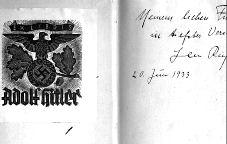 | Hitler's personal copy of Fichte’s complete works carries a handwritten note to him from Leni Riefenstahl |