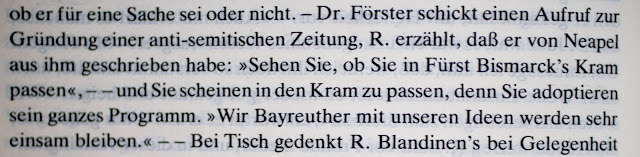 Yet Cosima herself still noted Wagner's reaction in her diary on the 14th of November, 1879 to a sermon by early völkisch agitator, Pastor Adolf Stöcker: